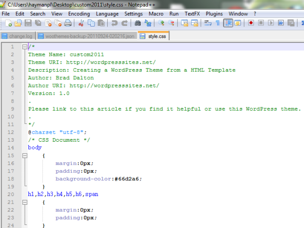 CSS File in Notepad